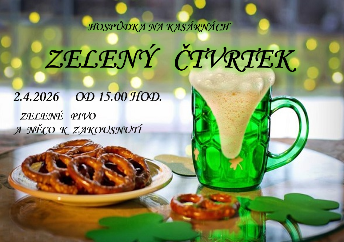 Zelený čtvrtek - zelené pivo, něco k zakousnutí.
