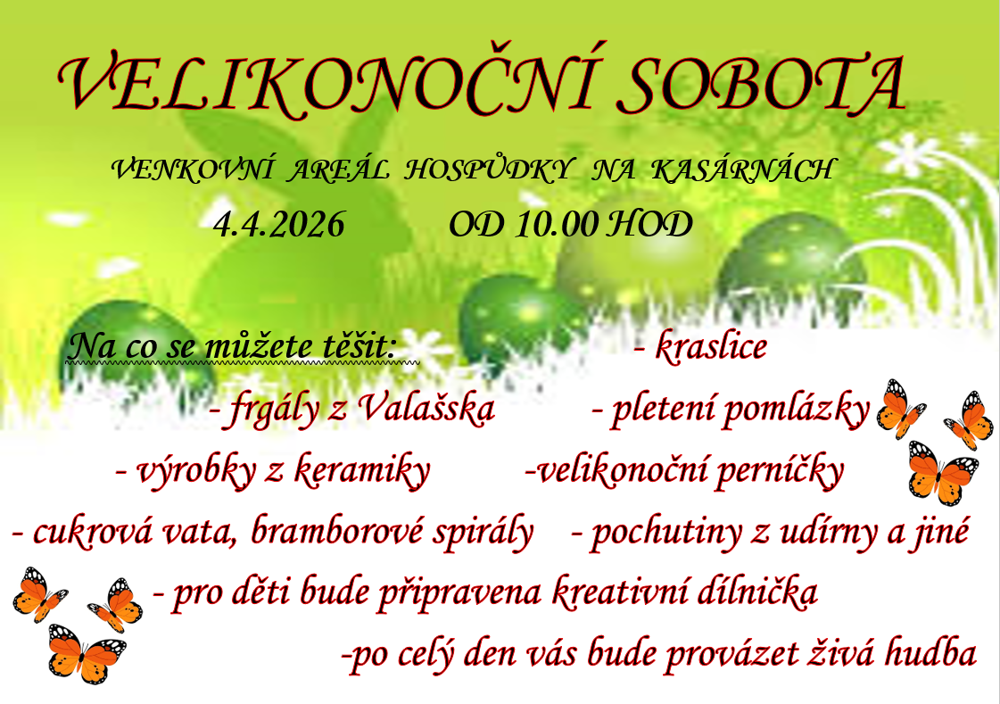 Velikonoční sobota - frgály, kraslice, pletení pomlázky, perníčky, cukrová vata a další.